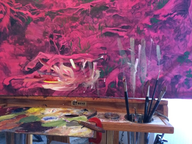 I've made some progress this week, but can't help but feel I am a little behind schedule. I have a 3.4'x6' canvas waiting to be primed and started. It sits behind me and stares, waiting, waiting for its turn at transformation.